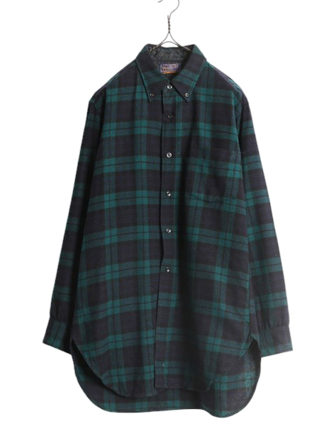 - 60s USA製 ペンドルトン ウール 3点留め ボタンダウン シャツ メンズ M 古着 ヴィンテージ ブラックウォッチ チェック 長袖シャツ BD 薄手