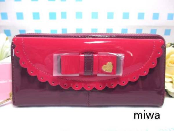 - 送料無料 67%引 サマンサベガ セレブリティ 限定 リボン フリル エナメル 牛革 ファスナー 長財布 ボルドー ピンク 新品 サマンサタバサ