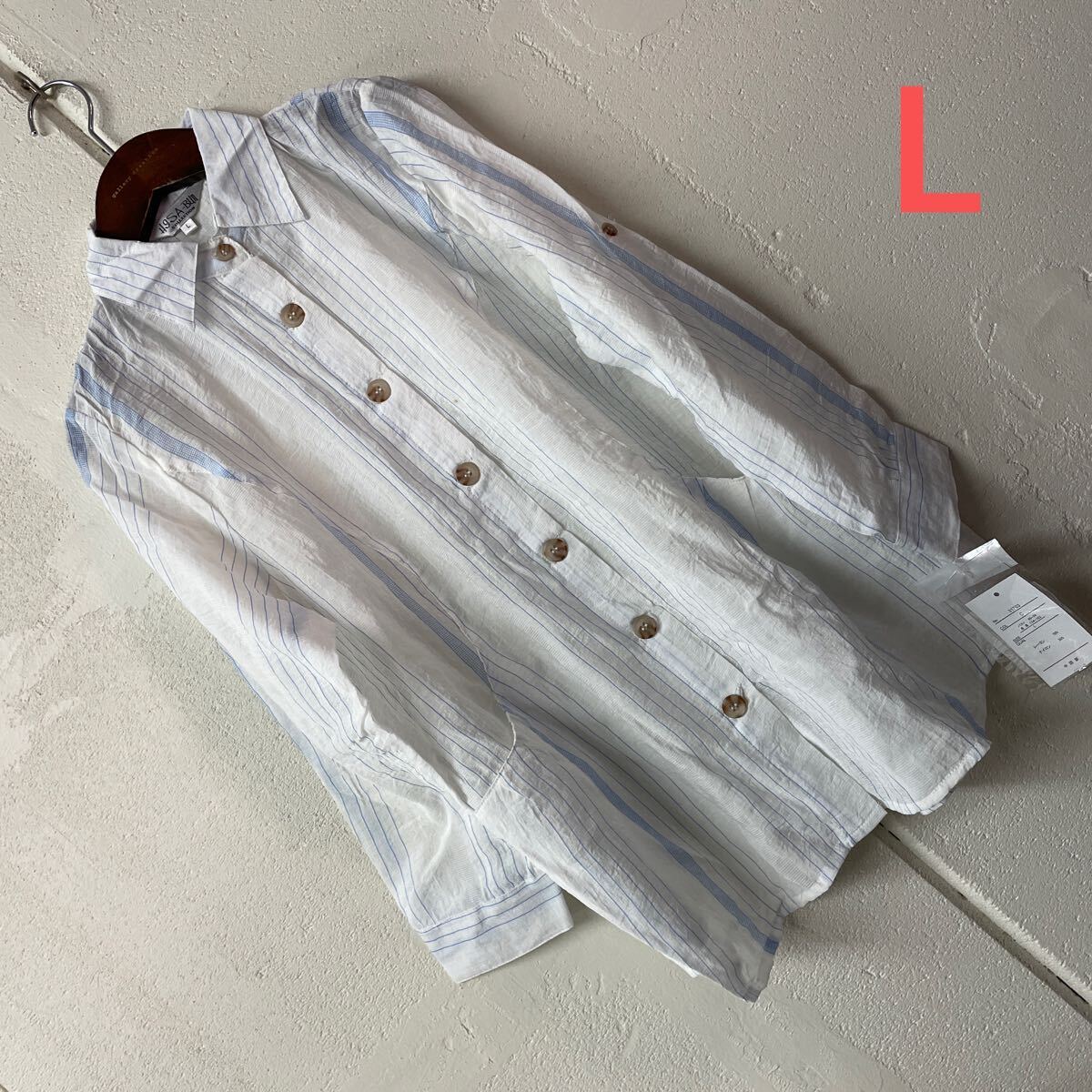 - 訳ありLサイズ前ボタンブラウスシャツチュニック ブルー