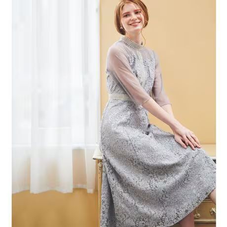 > 定価33,000円 新品 LAISSE PASSE レッセパッセ 《お呼ばれドレス》スタンドカラーレースナロードレス