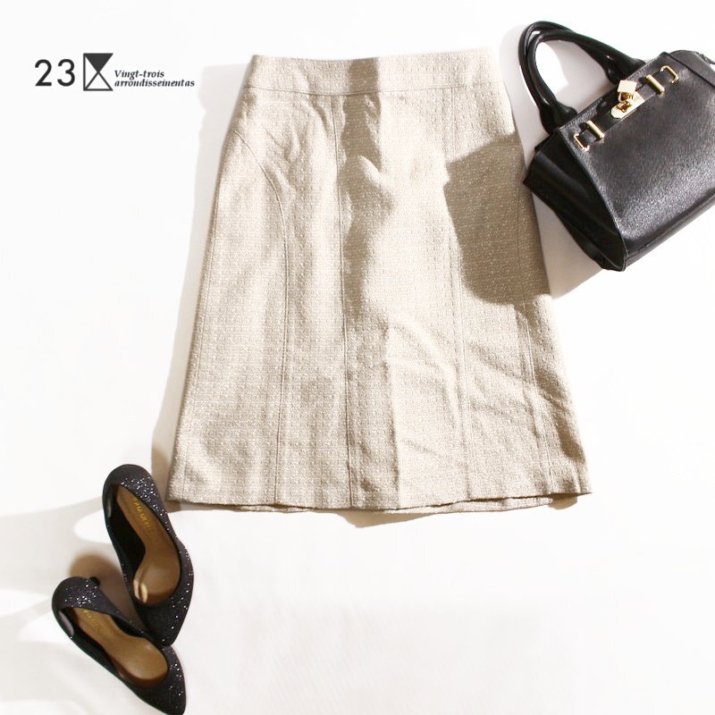 > 美品 23区 株) オンワード樫山 フォーマル ラメ タイト ツイードスカート 11号 40 ホワイト 白 薄ベージュ 入学式 卒業式 発表会 通勤