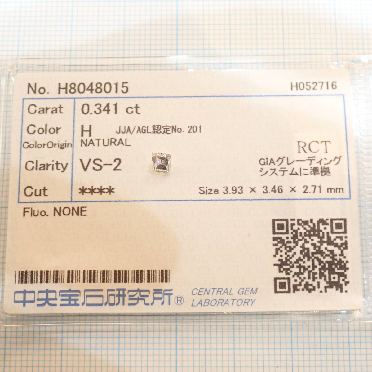 - ■ダイヤモンド 0.341ct H VS-2 中央宝石研究所 ソーティング RCT■