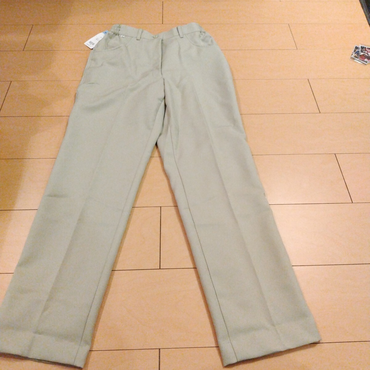 - パンツ 作業服 レディース L 11 ベージュ ボタン ゴム入り 汚れ魔専科 明石 日本製 帯電防止 難溶融 ストレッチ 撥水 撥油 防汚