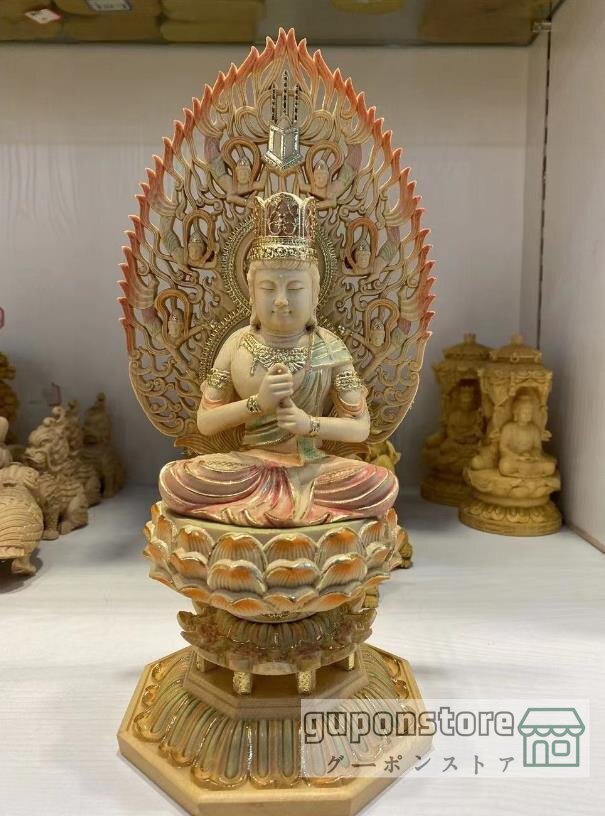 - 新品 大日如来座像 極上品 彩金彩繪 木彫仏像 総檜材 高さ約28cm