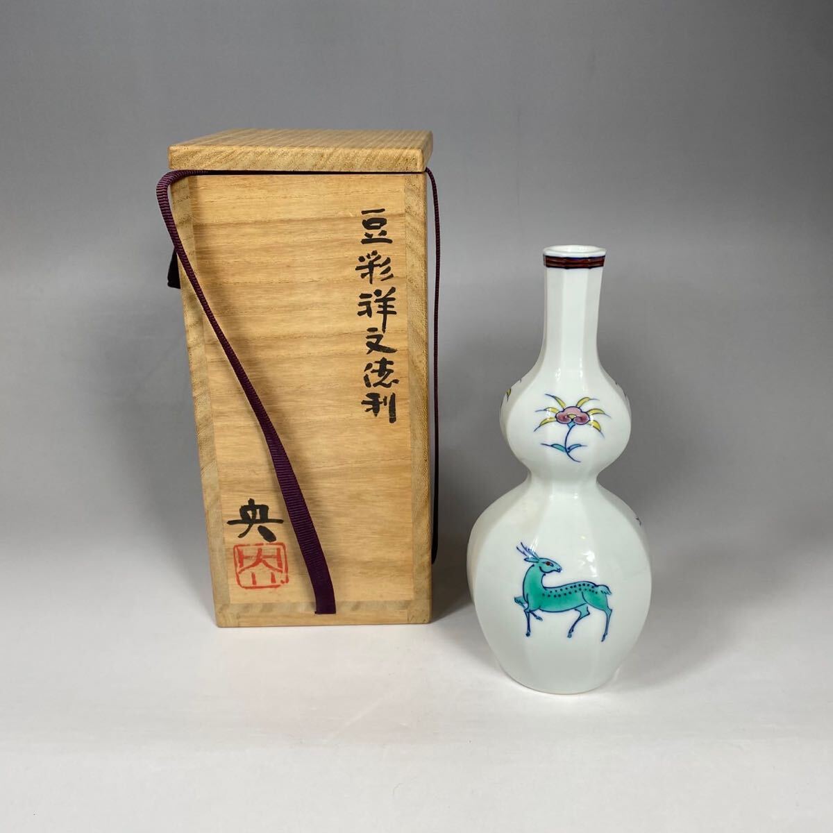 - 手塚央 豆彩祥文 酒器 徳利 共箱 シカ 鹿 瓢箪 徳利 作家物