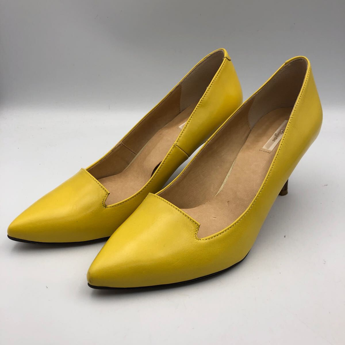 - M040 日本製 レディース パンプス 36.5 約 23cm イエロー レザー