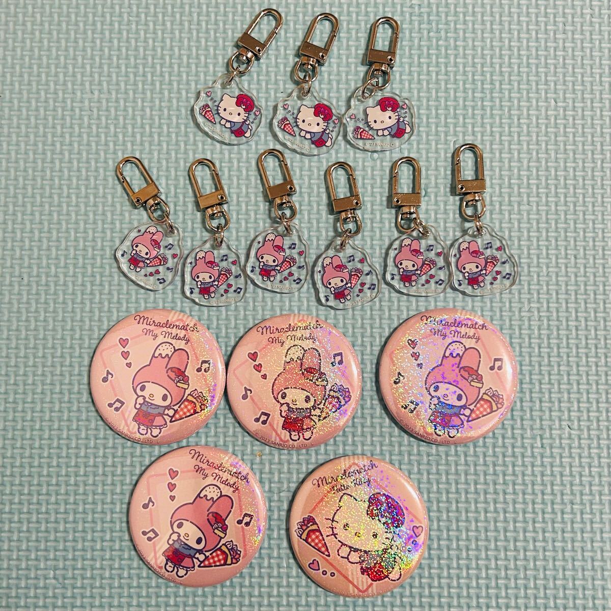 - マイメロディ ハローキティ 缶バッジ アクリルチャーム サンリオキャラクターズ ミラクルマッチ マリオンクレープ サンリオ 2023