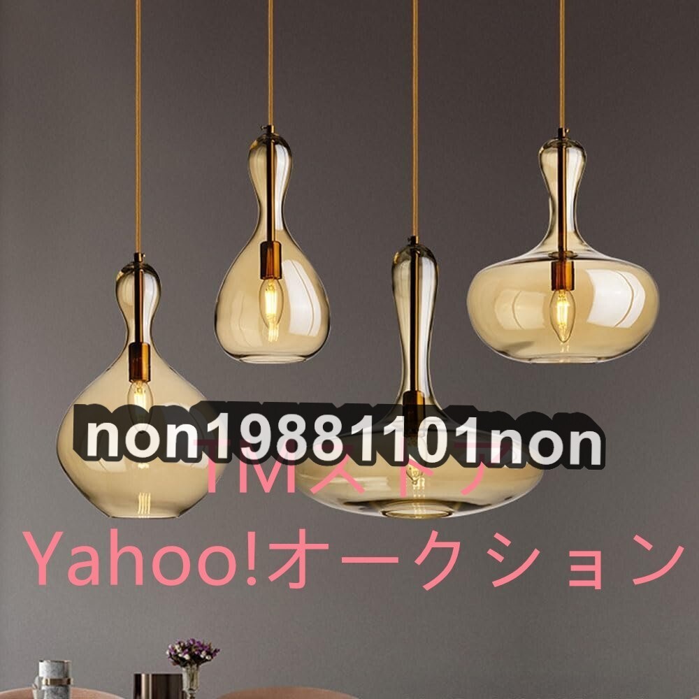 > ペンダントライト アンバー色 ガラス 1灯 北欧風 吊り下げ照明 口金E12 LED対応 引掛けシーリング式ダイニング リビングルーム照明器具(B