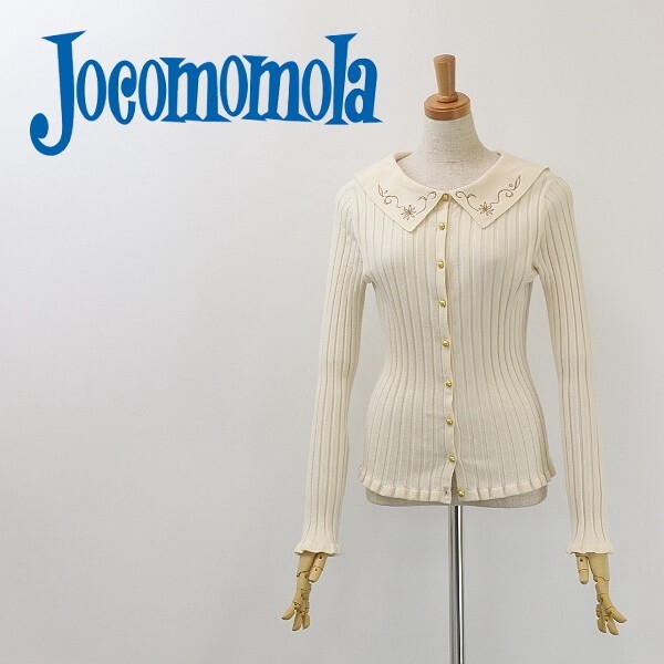 - ◆Jocomomola ホコモモラ シビラ フラワー刺繍 セーラーカラー リブニット トップス カーディガン アイボリー 40