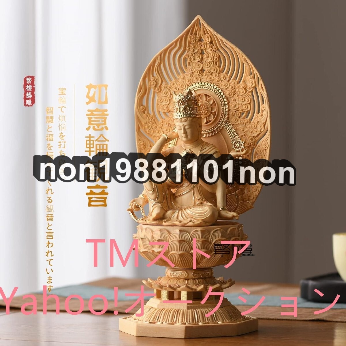 - 仏像 如意輪 観音菩薩 桧木製 厄除け 開運 守護 繁盛 ご利益 (高さ28cm×巾12cm×奥行12cm) (原木蒔絵)