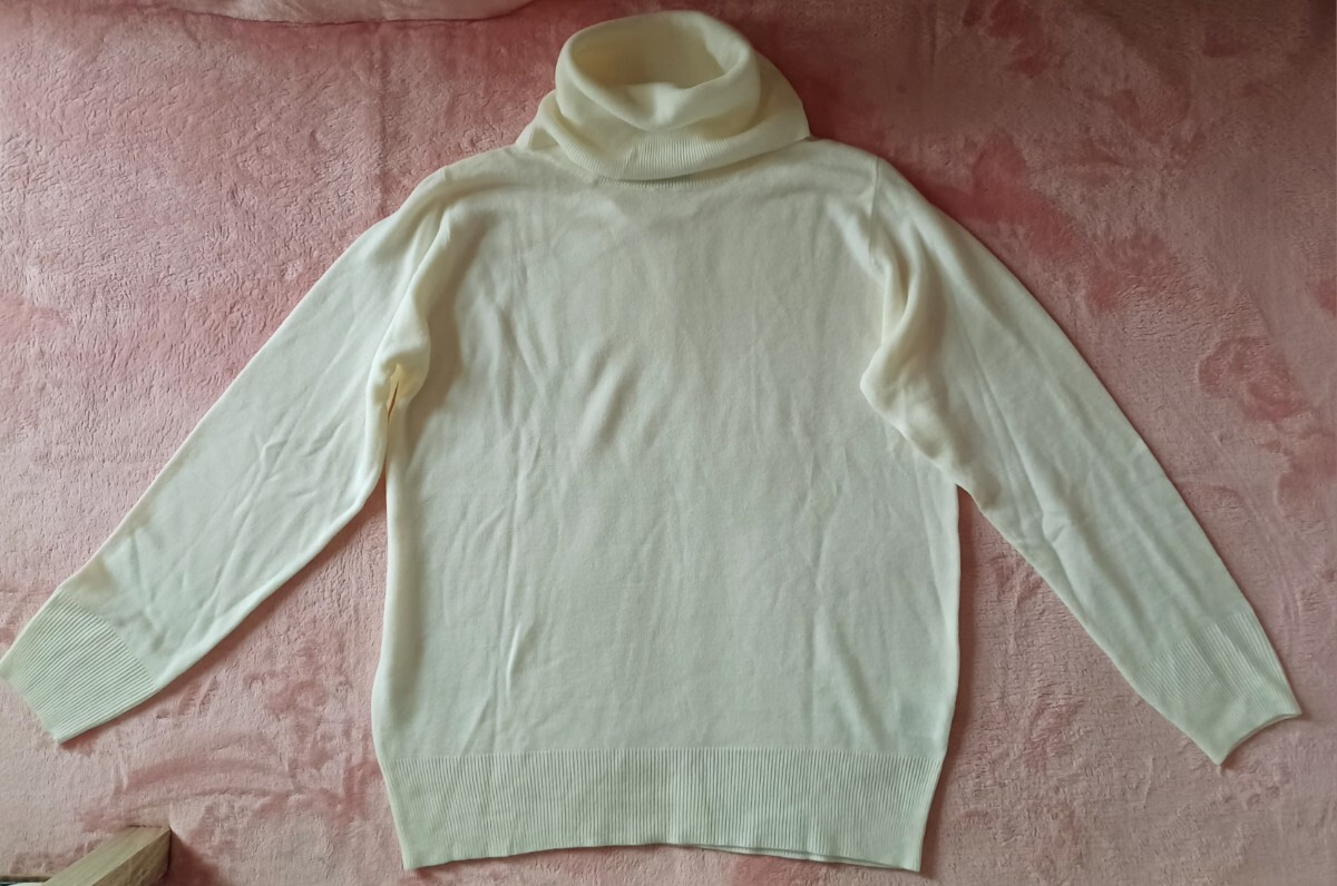 - ★白オフホワイト可愛い♪シンプル使えるとろみ柔らか軽量ゆったり楽チン♪ふんわり暖か快適くしゅくしゅタートルネック長袖ニットセーター