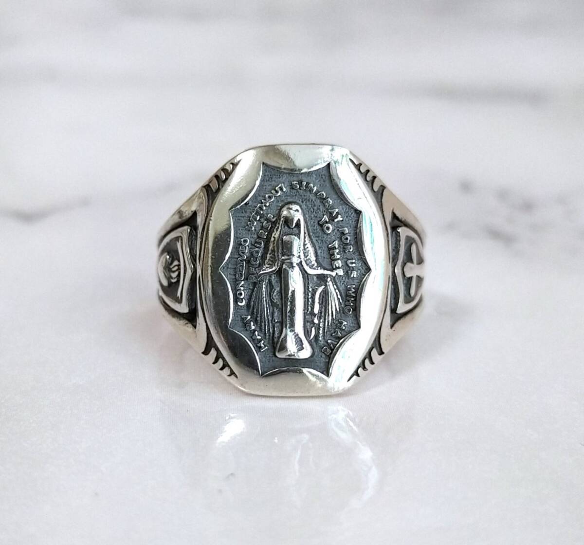 - 不思議のメダイ リング ヴィンテージ調 マリア シルバー925 指輪 コイン メダル いぶし銀