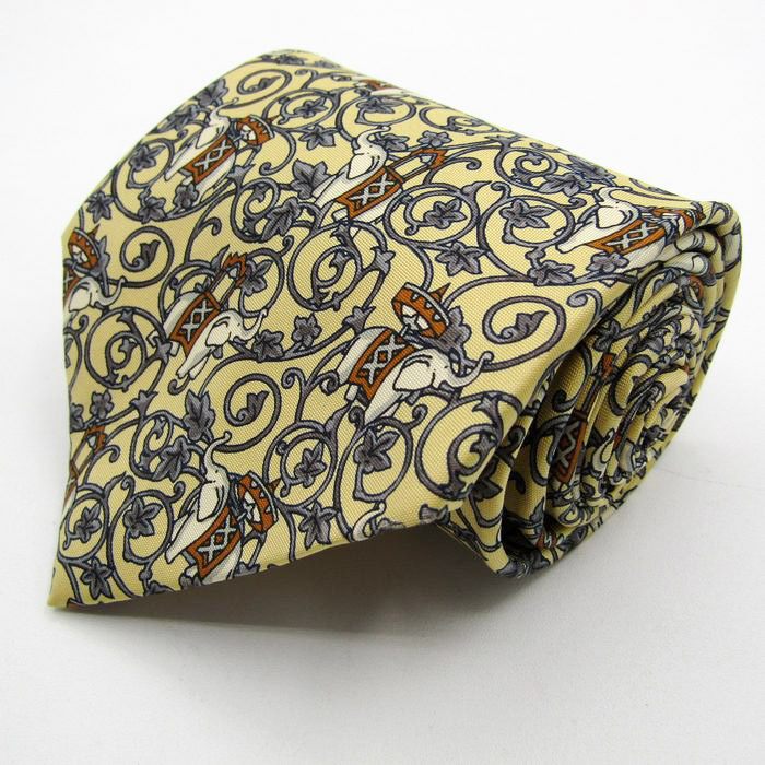 - ジムトンプソン ブランド ネクタイ 総柄 動物柄 ゾウ リーフ柄 シルク PO メンズ ベージュ JIM THOMPSON