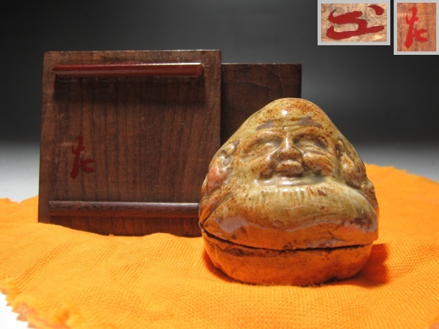 - 【11/25まで30%オフ最終出品!】☆ 時代 寿老人香合 表千家 九代 了々斎の花押がございます☆y189