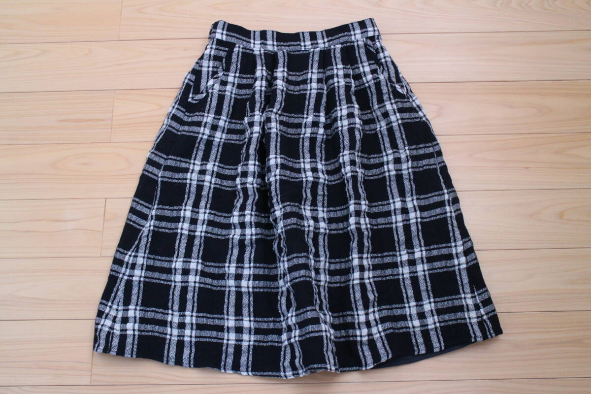 > 【賢くおしゃれ♪】*サマンサモスモスSamansa Mos2*可愛いあったかウールブレンド大き目チェックフレアースカート M ブラック フェリシモ黒