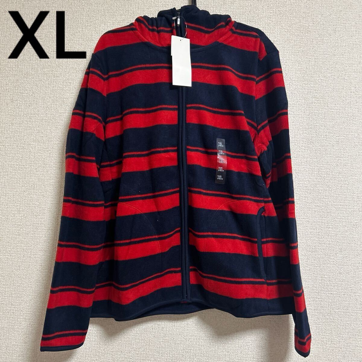 - 新品 ユニクロ プリントフリース フルジップパーカー ボーダー 長袖 ネイビー XL