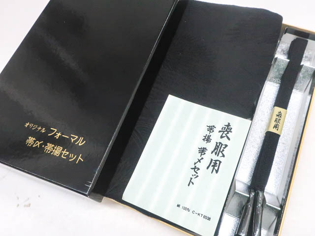 - 《京都一輝堂》【着物】 和装小物 帯締め 帯揚げ セット 帯締 帯揚 喪服用 未使用品 箱入り r7w02-536