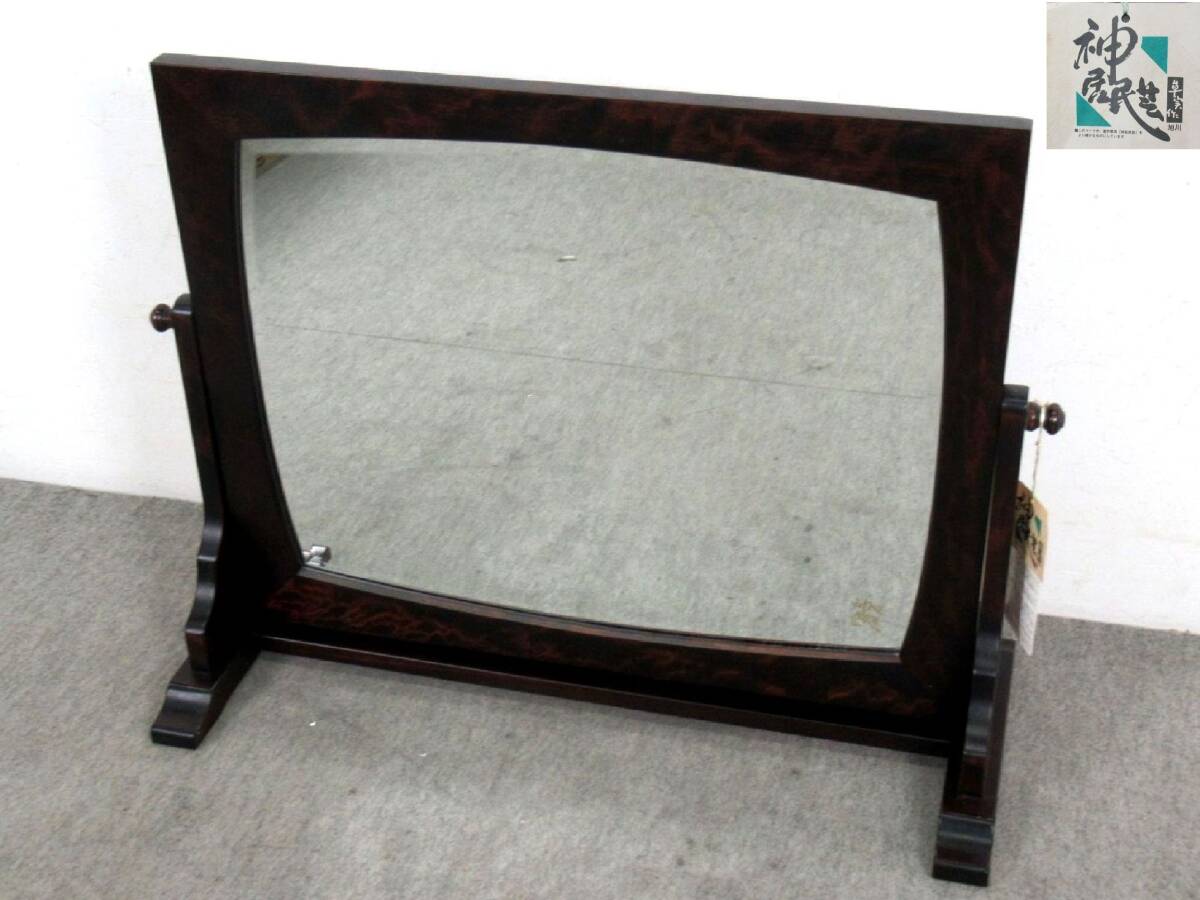 > 北海道 旭川 民芸家具 神居民芸 カムイ民芸 置鏡(丸) W820mm カバ無垢材 草実作 アンティーク クラシック 和モダン