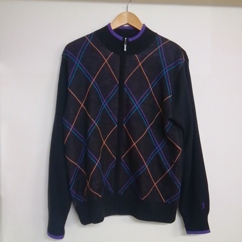 > ★【古着】 PGA TOUR(ピージーエーツアー) ニット(ジップアップ) Lサイズ ブラック ほつれ有り