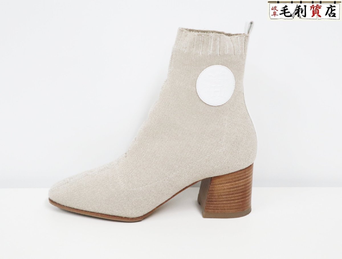 > エルメス HERMES ショートブーツ ヴォルヴェール サイズ36.5 ファブリック レザー ベージュ ホワイト 靴 シューズ