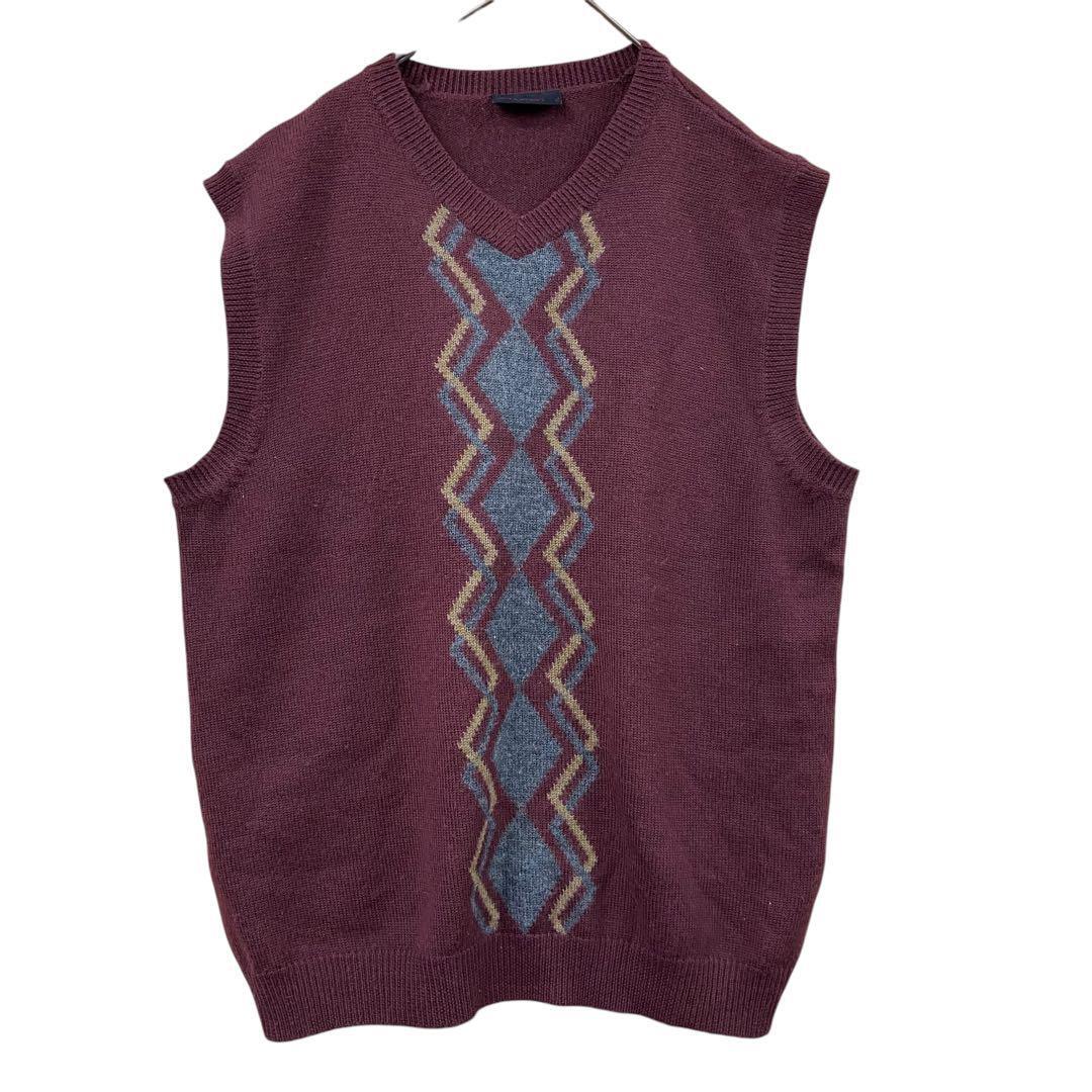 - フォーユーメン メンズニット ベスト 紫 XL 織ダイヤ柄【2432】