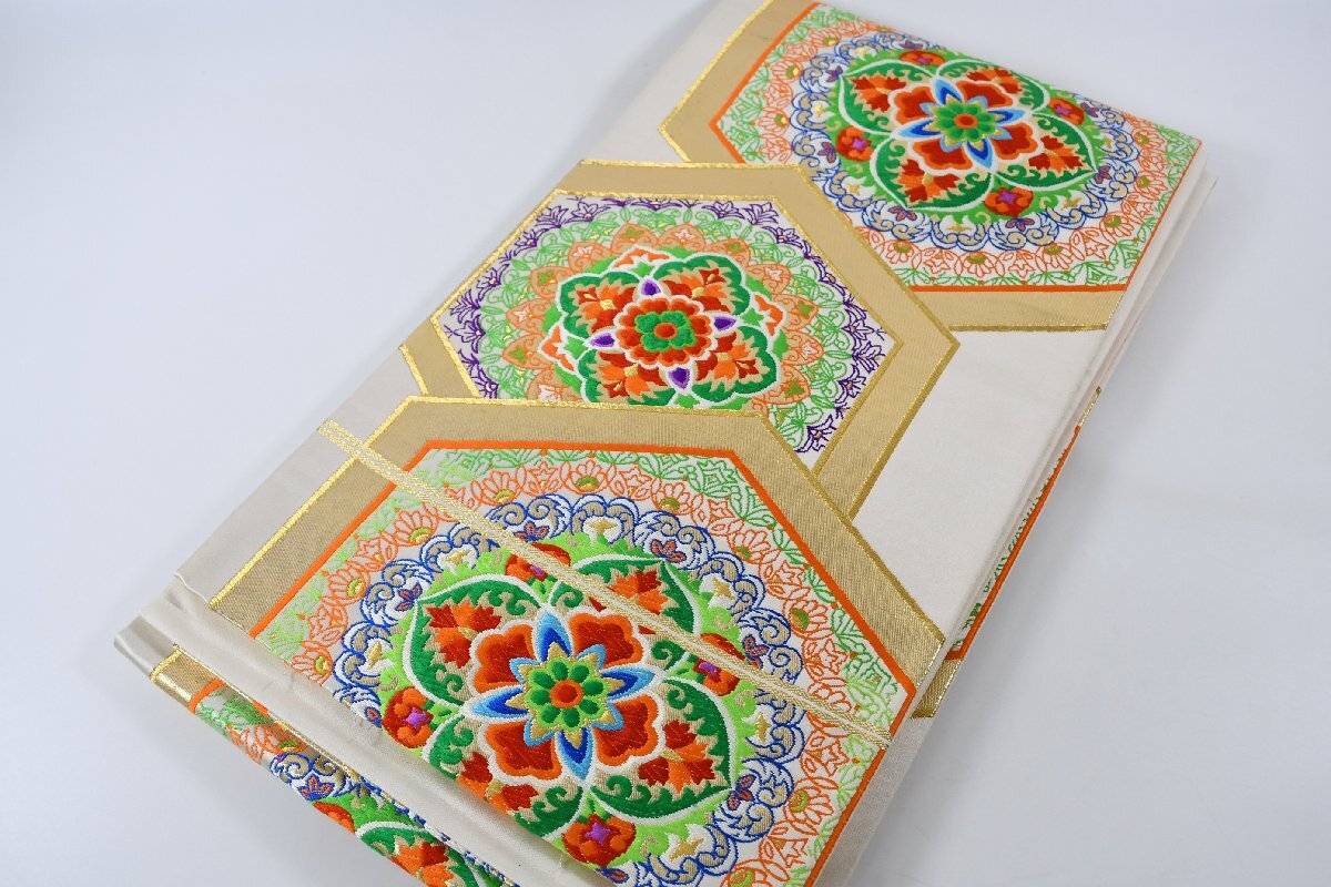 > 袋帯 未仕立て 六通柄 亀甲 金糸 帯丈420cm ★着物屋 ne-14282 桜庭呉服店