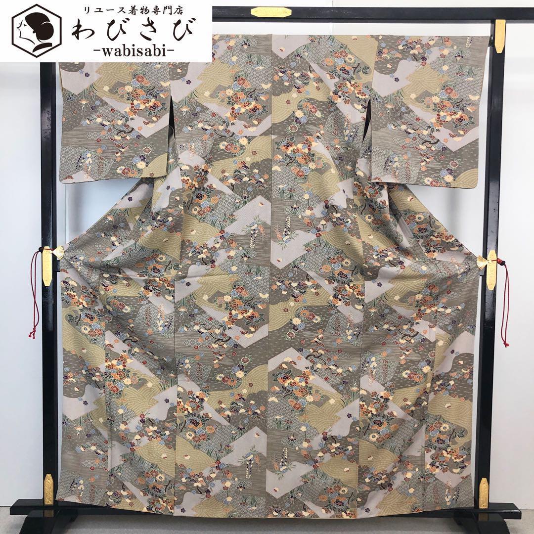 > 小紋 四季の花模様 鹿の子模様 縮緬 K-4420 着物 きもの kimono 和服 和装 中古 リサイクル着物 【送料無料】