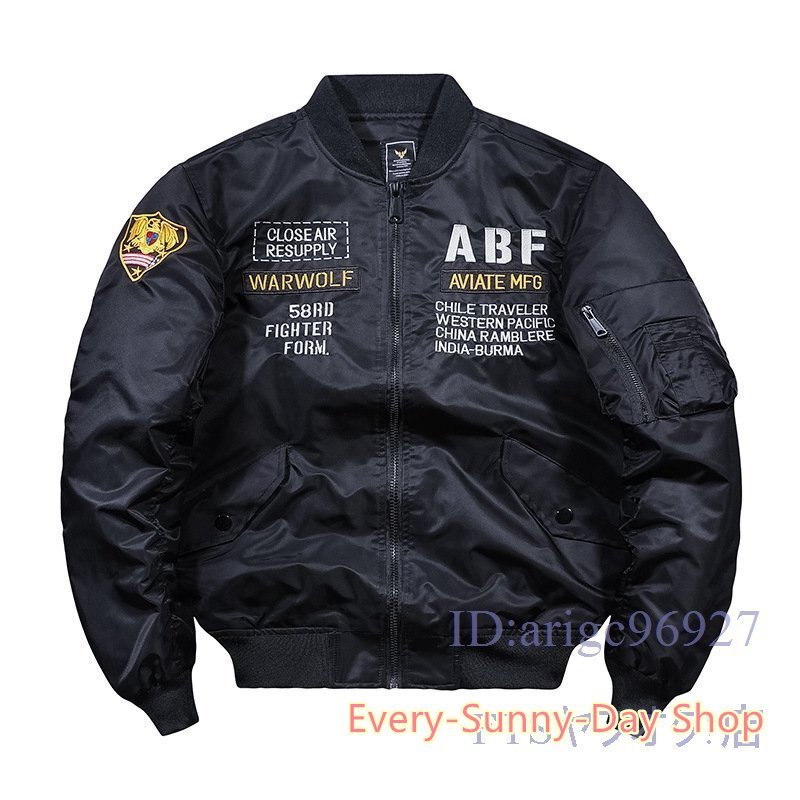 - 新品メンズフライトジャケットMA1-中綿ジャケット野球服刺繍中綿ブルゾンジャンパーアウターミリタリージャケット黑M~4XL