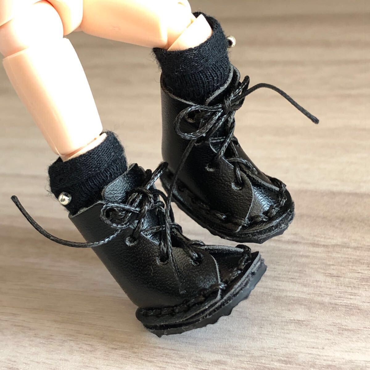 - オビツ11用 フェイク レザー ロングブーツ 合皮 靴 ミニチュア レースアップ ブーツ