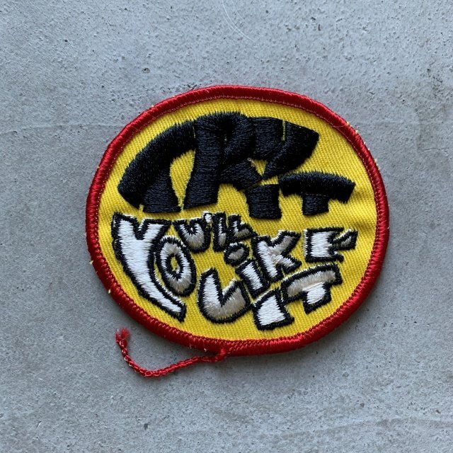 > 【7.5㎝×8.5㎝】デッドストック「TRY IT YOU'LL LIKE IT」刺繍ワッペン 黄色■ビンテージ レトロ アメリカ古着 70s パッチ ヒッピー