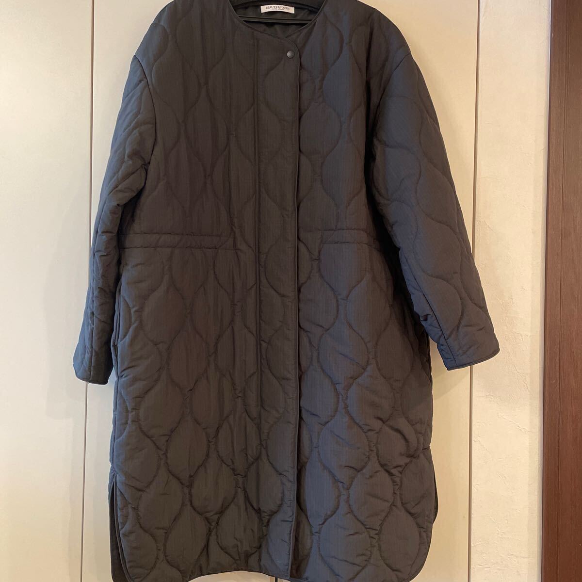 > ★美品★UNITED ARROWS ユナイテッドアローズ キルティングコート 定価3万 大きめ ノーカラー コート 黒 ブラック S 一度着用のみ 兼 M L