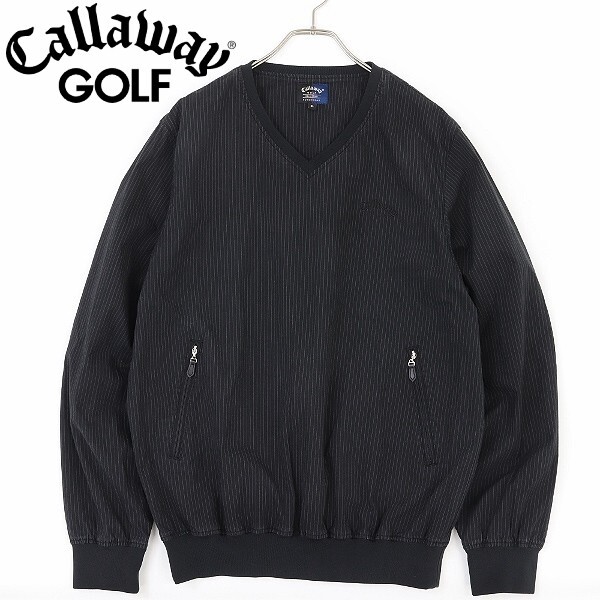 - ◆Callaway Golf キャロウェイ ゴルフ ストライプ柄 ストレッチ コットン ロゴ刺繍 Vネック プルオーバー ジャケット 黒 ブラック 3L