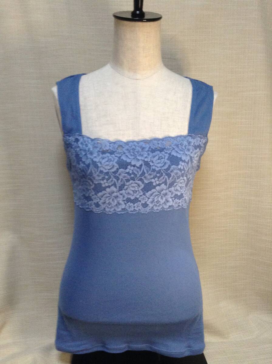 キャミソール タンクトップ ブルー(青) サイズL レディース,女性用 インナー トップス 綿65%ポリエステル35%