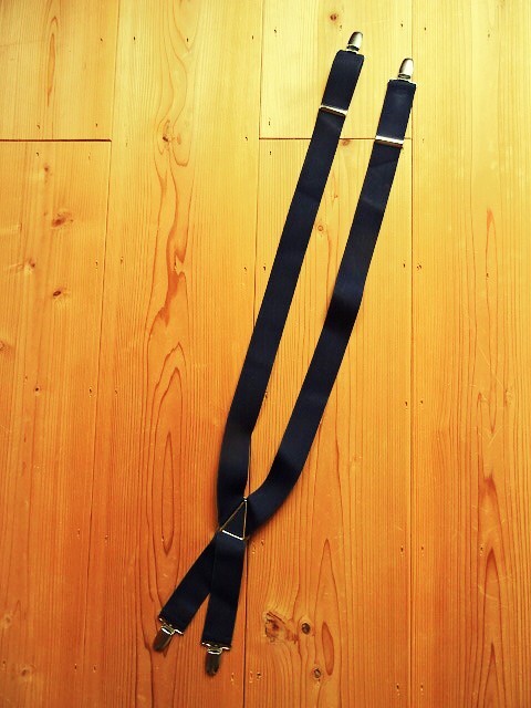 > X型サスペンダー 吊りバンド 金具 ワークスタイル アメカジ スーツ レトロ 50s60s70s80sファッション 個性派 紺 ネイビー 太め USED 中古