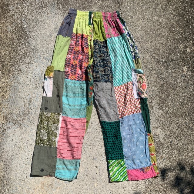 > 【W25-W30】UNKNOWN ハンドメイド パッチワーク イージーパンツ チェック 総柄■ビンテージ レトロ アメリカ古着 レディース ウエストゴム