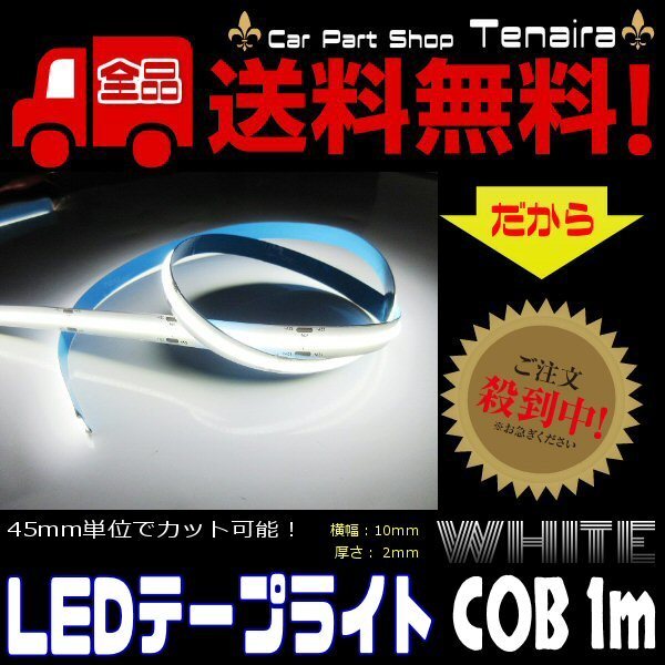 > 超光量! 12v COB 面発光 LED テープライト 1m巻き 極薄2mm 白 ホワイト 色ムラなし カット使用可能 デイライト ゆうパケ 送料無料/3