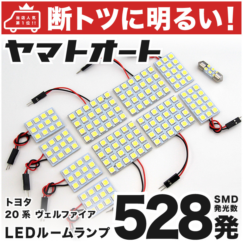 > ◆ヴェルファイア 20系 前期/後期 トヨタ 車検対応528発! LED ルームランプ 11点 TOYOTA VELLFIRE 室内灯 カスタムパーツ ベルファイア