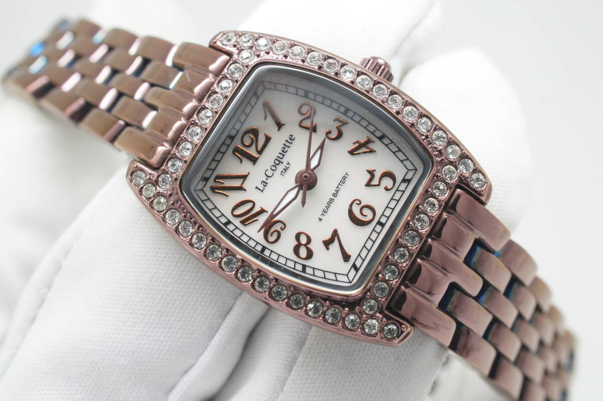 > B88●作動良好 美品 La Coquette 4 YEARS BATTERY シェル文字盤 ラインストーン トノー型 レディース腕時計 お洒落 クォーツ