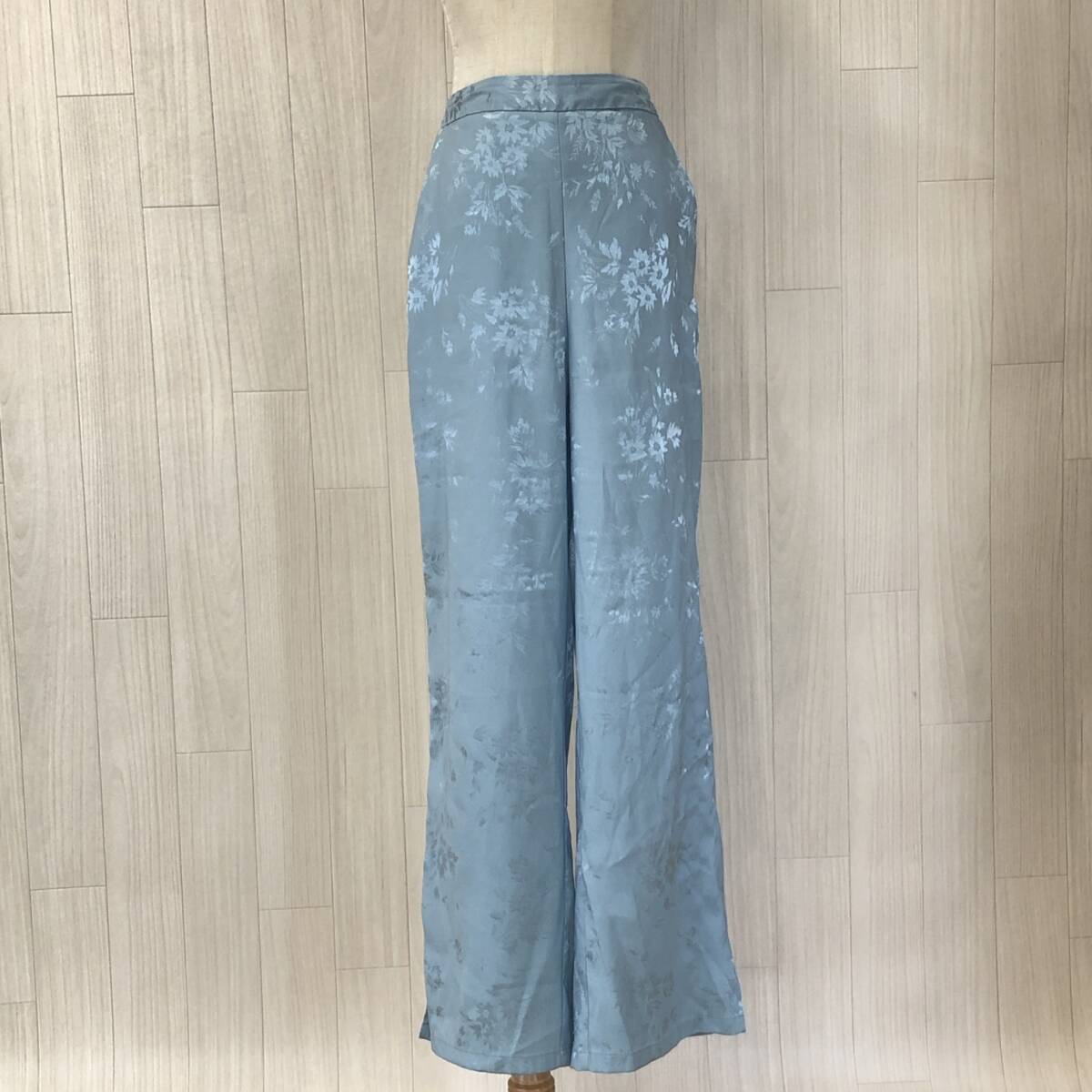 > Y1688 GU(ジーユー) レディース パンツ ロング丈 サイドポケット 薄手 L 鮮やか 水色 花柄 エレガント USED 春夏 ウエストゴム 休日