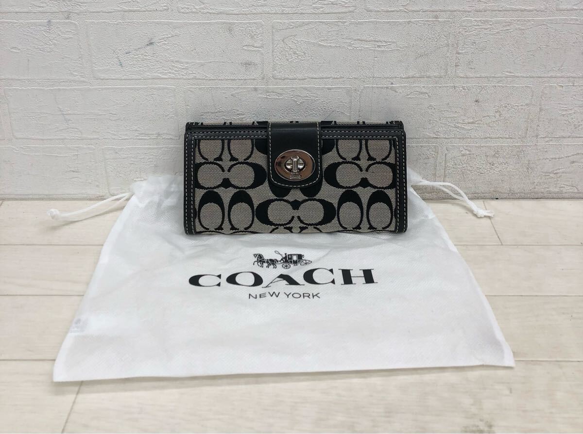 - M3〓 保護袋付き COACH コーチ 長財布 レディース 財布 ウォレット シグネチャー ブラック ターンロック 小銭入れ有り 札入れ有り 服飾小物