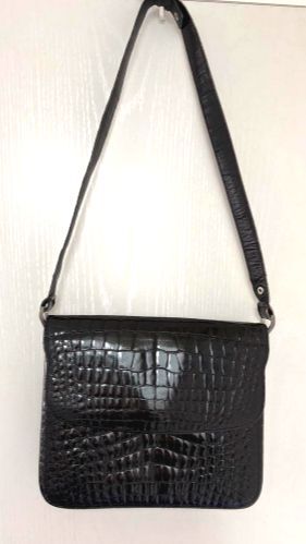 - GINO TROMBA クロコダイル ハンドバッグ 黒 縦19.5cm 横23cmマチ6cm ベルトの長さ78cm used \29800