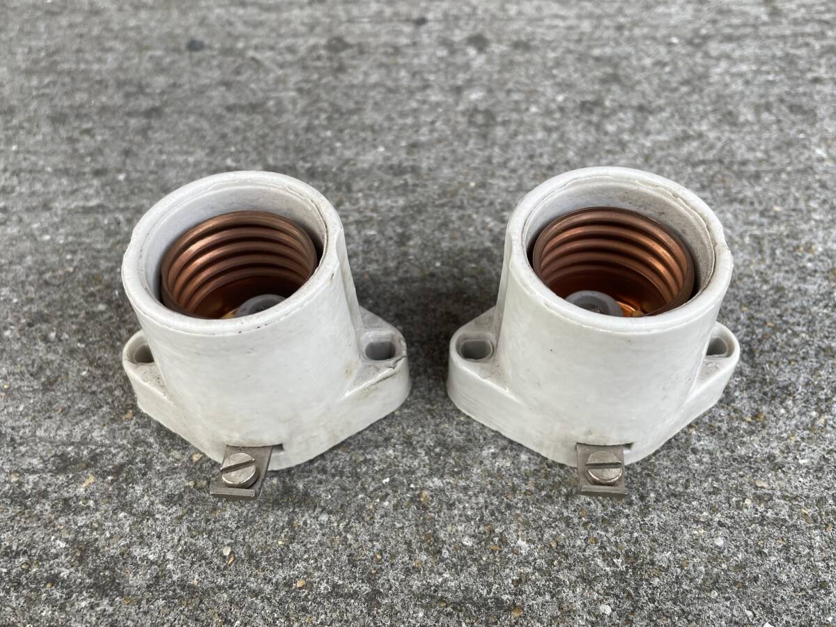 - 2個セット!Te2-1. フランス アンティーク 陶器 壁付け ソケット ランプ 磁器 真鍮 北欧 カフェ 吊り下げ アトリエ 古民家 カフェ