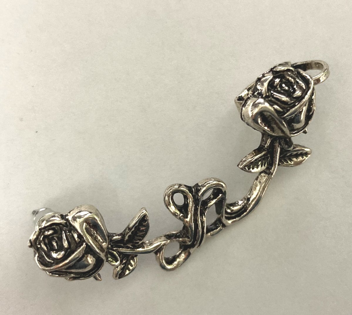 - 薔薇モチーフの大きなピアス★燻し加工シルバー