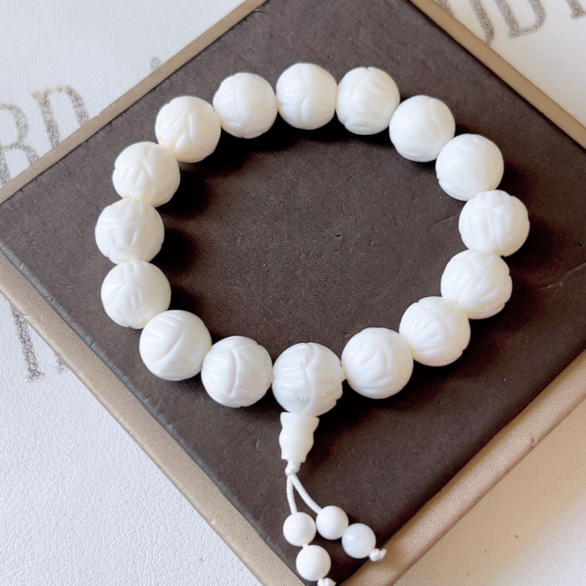 - ◇オオシャコガイ(大貝)貝殻加工品◇蓮花形◇ブレスレット◇巾着袋付き◇プレゼントにも 034B22715