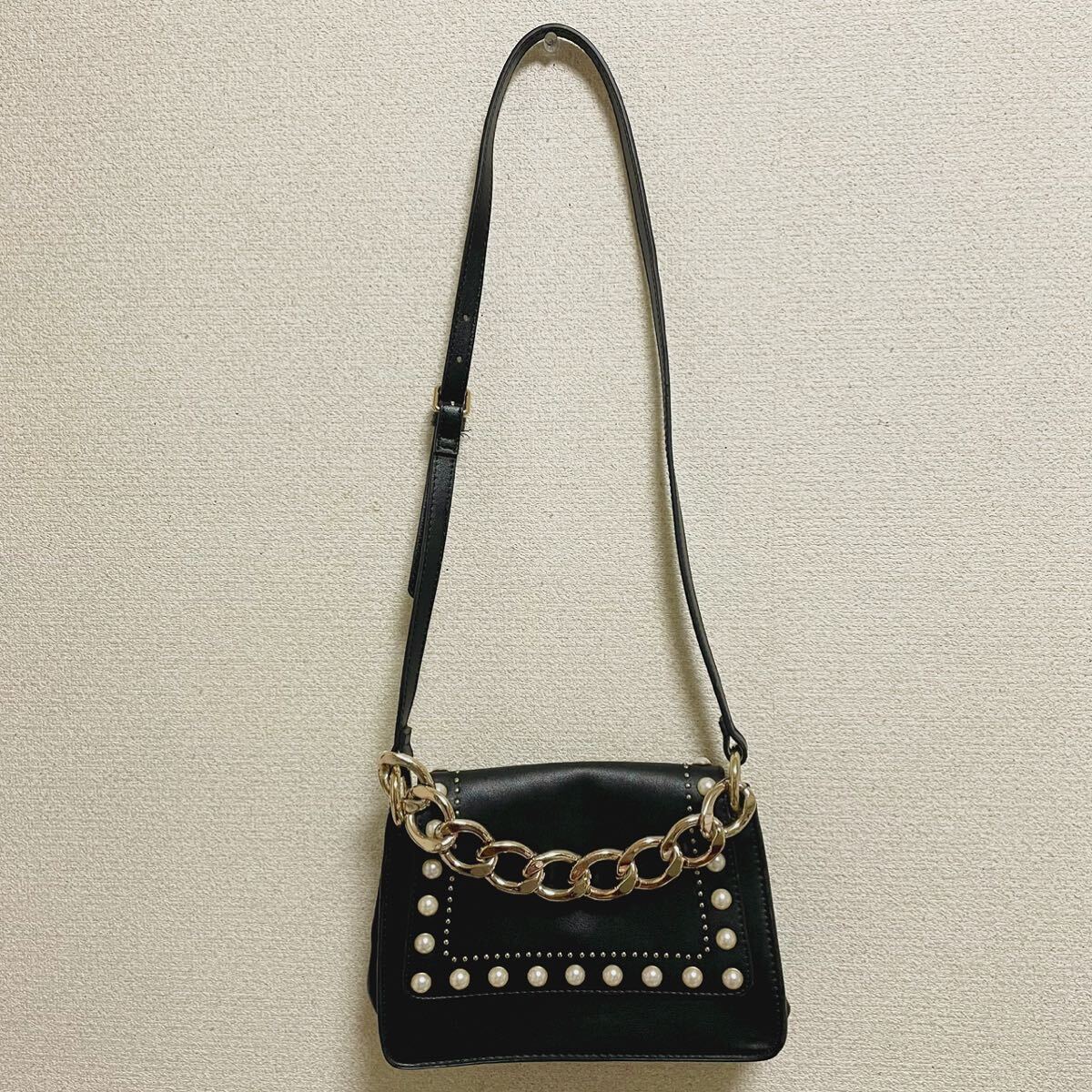 - 【美品】ZARA ザラ 黒 ブラック パール付 チェーンショルダーバッグ ショルダーバッグ ハンドバッグ