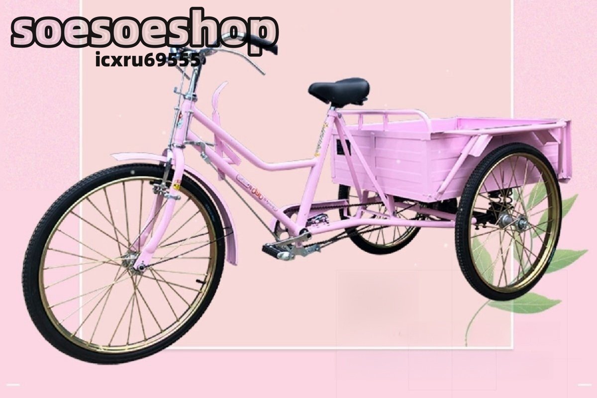 - 超人気 ピンク 三輪自転車24インチ 載荷重150kg ダブルブレーキ大人用貨物三輪車三輪車 大容量 貨物バスケット後カゴ付