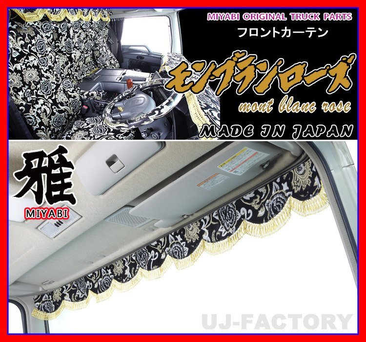 > ★MIYABI/フロントカーテン モンブランローズ・Mサイズ/ブラック(黒色)★横幅1900mm バラ柄とモンブラン柄が融合の近代的デザイン!