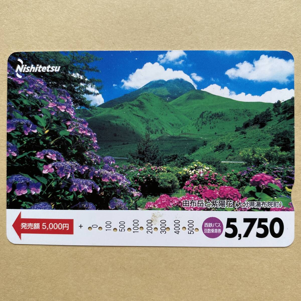 - 【使用済】 花バスカード 西鉄バス 由布岳と紫陽花(大分県湯布院町)