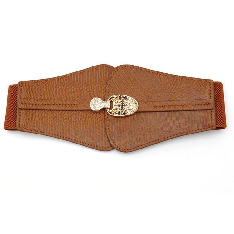 - 60cm~80cm 【ブラウン色】 ゴールドバックル 幅広ゴムベルト
