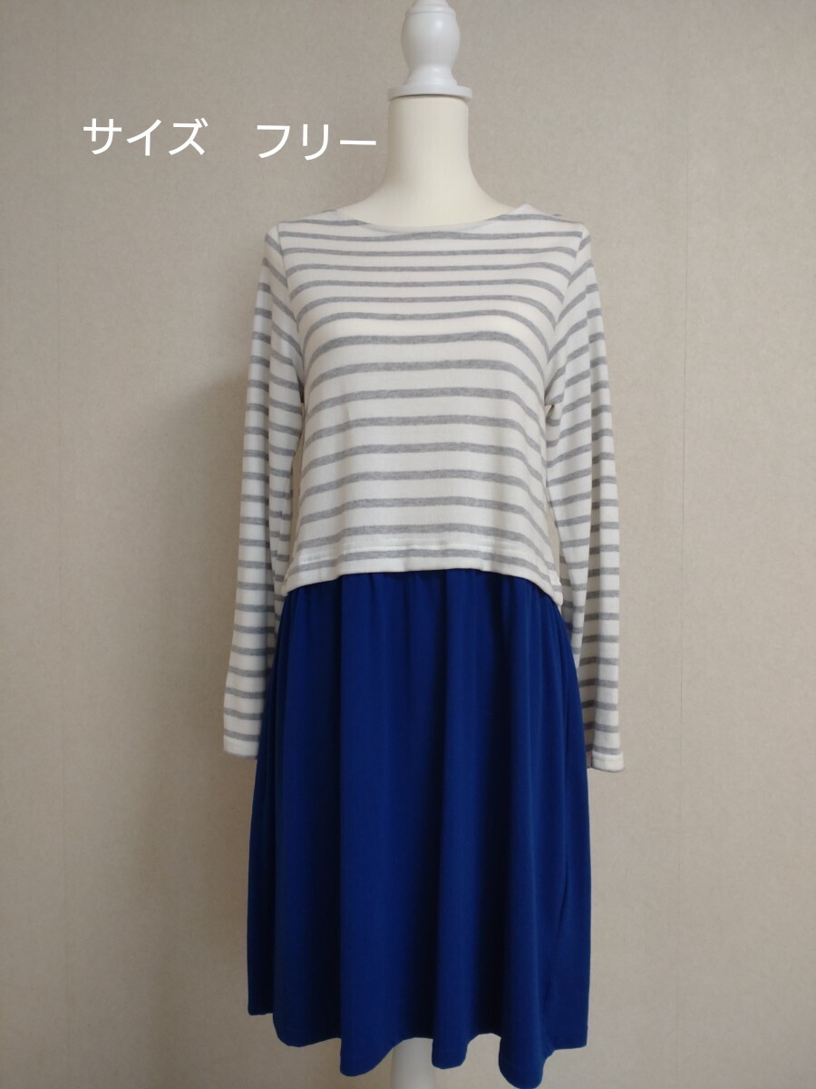 - ☆graniph グラニフ ドッキング ワンピース 長袖 サイズフリー☆ ボーダー ネイビー